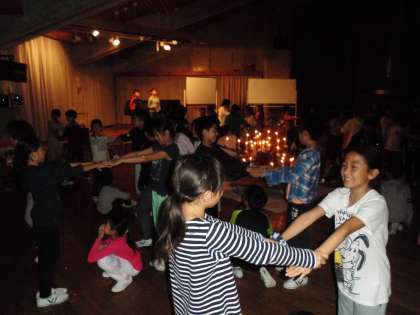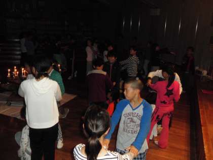 レクレーション係がゲームの司会進行をしました。初めに「りすと木」というゲームをしました。