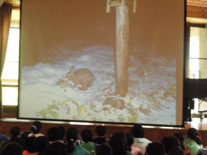 退所式の前に,野鳥の森に仕掛けたカメラの映像を見せてくださいました。毎晩のように同じ鹿やきつねが現れているみたいです。また冬には野生のうさぎがやってきます。