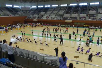 2年「アラヒガ ジャイアンツ」チームは元気いっぱい。勝負がつくまで,あきらめずに綱を引き,頑張りました。