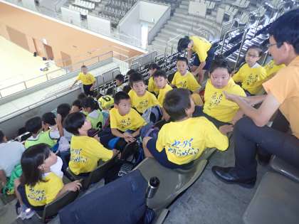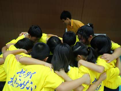 4年「あらひが レインボー」チームは,試合の合間にしっかりとミーテイングを行いました。