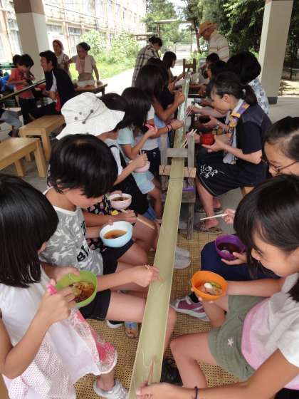 めったに経験できない流しそうめん。子どもたちだけでなく,教職員も参加させていただき,とても楽しい昼食となりました。