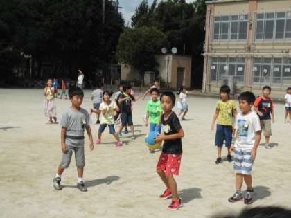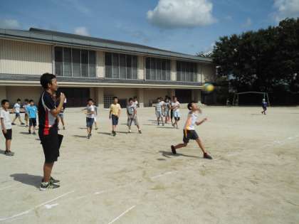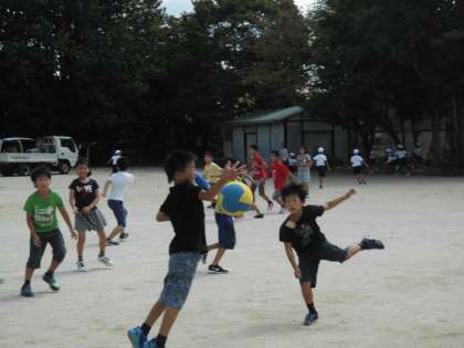 運動委員会主催のドッジボール大会が始まりました。低・中・高学年別にコートに分かれてクラス対抗の試合を行います。