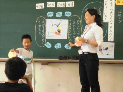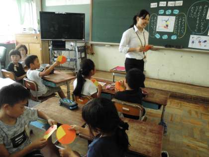 授業の中で友ちゃんが何度も逆上がりの練習をしたけれど,できなかった時どんなことを考えていたのか,心情円グラフを使いながら,「しんどい気持ち」と「頑張りたい気持ち」の2つの気持ちがあることを表しました。