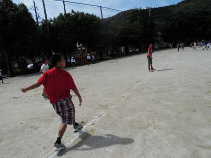 体育委員会主催のドッジボール大会。あおぞら学級の子は交流学級に入って試合をしました。スピードのあるボールにびっくりしながらも,コート内を走ってボールを避けていました。