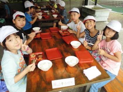 12時30分過ぎにみさきの家に到着しました。まずは野外炊事場でお昼ご飯を食べました。