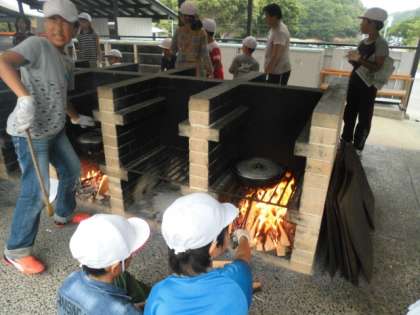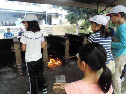 火の係は初めに新聞紙を丸めて小さなまきを並べ燃やす準備をしました。例年に比べてすぐに火はついたのですが,鍋の準備ができていないところが多く,火をつけるタイミングが少し早かったようです。
