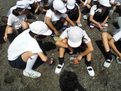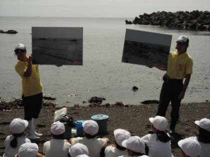 マリンランドの所員の方が来てくださって,海には干潮や満潮があることを教えてくださったり,イソギンチャクの観察を行ったりしました。