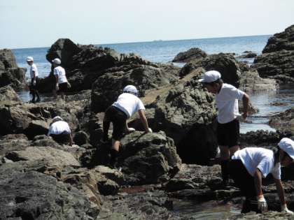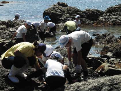 子ども達は夢中になって生き物を捜し,ヤドカリやナマコ,小さな魚やウニなどたくさんの生き物を発見することができました。