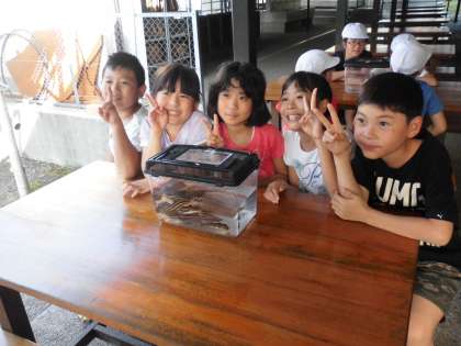 大きなふぐやゴンズイ,かわはぎなどいろいろな種類の魚が捕れて子供たちも大興奮!