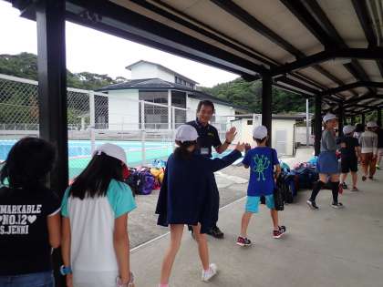 退所式をすませたあと,職員の方々とハイタッチをして,みさきの家を10時ごろ出発しました。