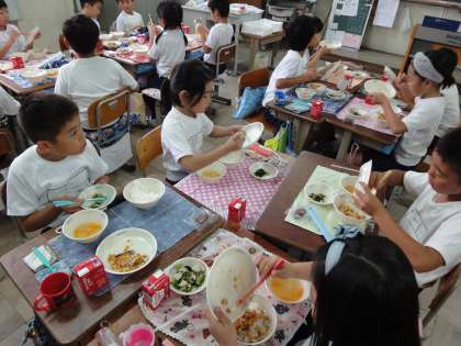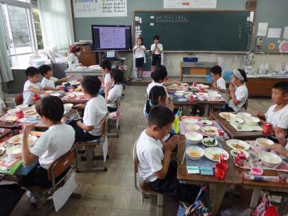 クラスでは,当番の子が献立の紹介をしてくれました。
