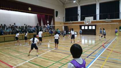 5・6年チームの対戦相手は強豪ぞろい。それでも,勢いのあるサーブをラインぎりぎりに決め,得点を重ねていきました。レシーブ・トス・アタックが決まると,メンバーも観客も大喜び。みんなでボールをつなぎ,勝利を勝ち取りました。