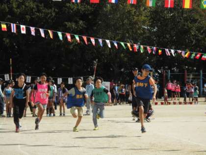10月8日,第44回学区民体育祭が開催されました。本校の子ども達も,各町内に分かれてプログラムNO4.学童レースに出場して熱戦を繰り広げました。