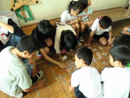 中間休みに縦割り活動がありました。教室では,なんでもバスケットやトランプで遊びました。