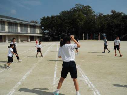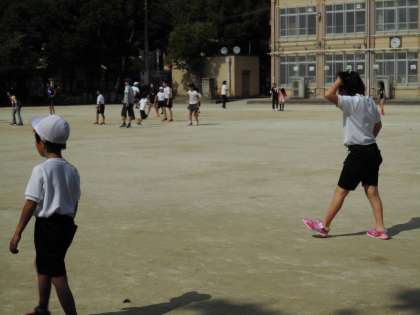 縦割り活動の運動場では,ドッチボールや鬼ごっこをして遊びました。
