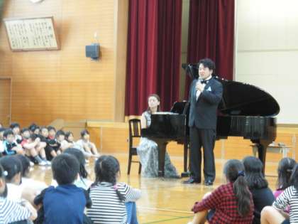 PTA秋の文化教室として,国内外でご活躍中のテノールオペラ歌手望月哲也氏,ピアニストに吉澤友里絵氏をお招きし,オペラ鑑賞教室を開催しました。PTAの大人の方はもちろん,子ども達も参加させてもらい,本物の歌を聴くという体験をさせていただきました。