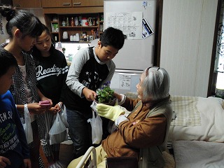 地域ごとに分かれて,お届け隊が配食ボランティアの方と一緒にお宅を訪問しました。ビオラの花苗を届けると,「ありがとう!」と大変喜んでいただきました。花プロキッズが育てたお花と一緒に笑顔を届けることができました。