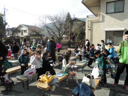 参加した子ども達はつきたてのおもちをおいしそうにほおばったり,温かい豚汁を食べて楽しい時間を過ごすことができました。