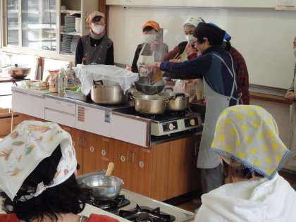 まず,昆布でとったお出汁をみんなで味見しました。そして,グループに分かれて調理に取り掛かりました。