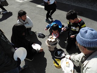 ようやく炭に火が移り,お餅を焼いてみました。じっくり炭火で焼くと,とてもいい匂いがしてきました。「火をつけるのが大変だったから,いつものお餅より美味しく感じるなあ。」「昔の人は,朝も昼も夜もこんなに時間をかけて火を起こし,家族のためにごはんを作っていたんだね。」と感想を伝え合っていました。