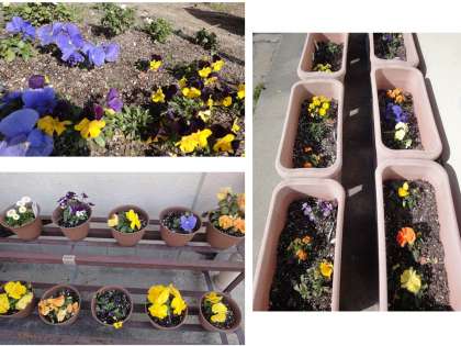 子どもたちが植え,育ててくれている草花が,暖かい日差しに誘われるように,ぐんぐんと伸びてきました。その様子を見て,子どもたちの笑顔が広がっています。