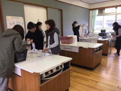 3月20日(火)に,たくさんのボランティアの保護者様にご参加いただき,給食エプロンの補修・洗濯を行いました。