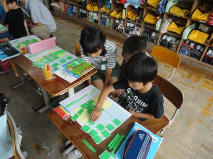 3年算数科「たし算とひき算の筆算」の学習(8日)の様子です。「十の位がひけない筆算の仕方を説明できるようになろう」をめあてに,計算棒を動かしながら計算の仕方を相手にわかりやすく説明できるように考えていました。お家でも,筆算の答えを出すことだけに執着するのではなく,「なぜそうなるのか」にも重きを置いていただきたいと思います。