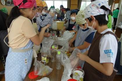 梅の産地である和歌山や梅の種類などの説明を聞いた後,さっそく梅ジュース作り。