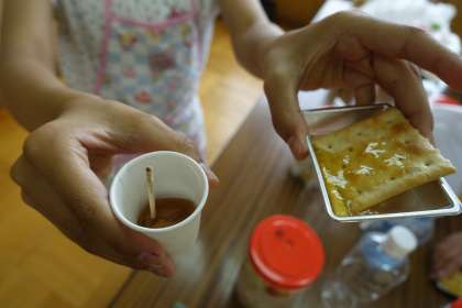 次に,梅ジャムをクラッカーに付けて試食させていただきました。