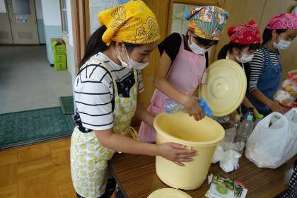まず,梅を漬ける樽をお酢で消毒します。