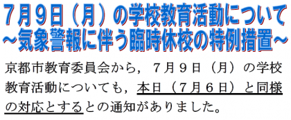7月9日(月)の学校教育活動について