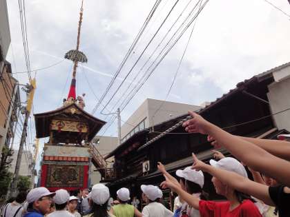 13日(金)に,放下鉾の曳き初めにでかけました。数トンもの重さがある鉾をみんなで引っ張り,新町通を進みました。祇園祭を見に来る観光客がとても多く,さすが,日本を代表するお祭りだなあと思いました。