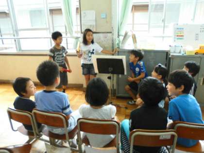 いよいよ,2年生に向けての発表会。声の大きさや間の取り方,言葉の抑揚なども工夫し,動作も入れながらわかりやすく発表できるよう練習してきたので,本番は落ち着いて説明することができました。
