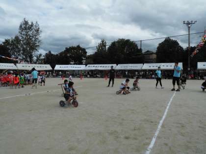 PTA競技では三輪車に乗ったり,木のぽっくりで歩いたり,また水鉄砲の的当てにも挑戦,子供たちはとても楽しんでいました。