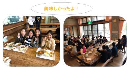 今日はカレーライスか,しょうゆラーメンでした。野外炊事でカレーライスを作るので,しょうゆラーメンが圧倒的に多かったです。バイキングもあります。