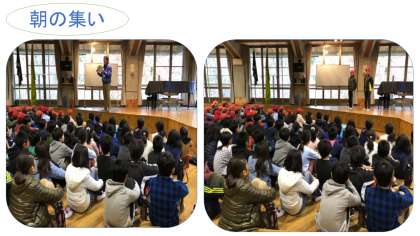 学校紹介では,山階南小学校と行いました。本校の取組の紹介の中で,「この星に生まれて」の響きある美しいハーモニーを奏でました。