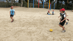 試合中に「勝ち負け関係ないで!楽しくプレーすることが大事やで!!」という児童の声かけがありました。この声を聞いて,周りの児童の表情も自然と笑顔になりました。