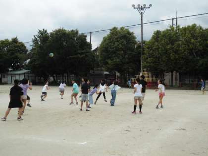 梅雨の合間の青空が見えるお天気になりました。中間休みの運動場を見てみると,たくさんの子どもたちが元気に遊んでいました。担任の先生も混じってクラスで全員遊びをしたり,ALTのマルタ先生と一緒にドッジボールをしたり,・・・。汗をいっぱいかきながら,思いっきり体を動かしました。