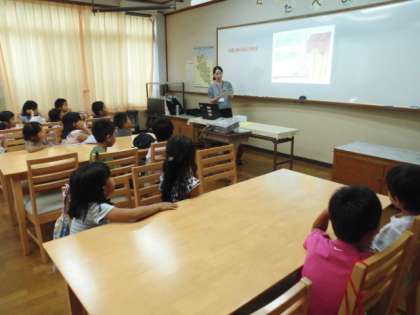 はじめに,栄養教諭の先生からお箸の歴史やお話を聞きました。お箸は,つかむだけでなく,魚を切ったり,食べ物を混ぜたり,麺類をすくったりと,たくさんの使い方があると学び,子どもたちは納得していました。