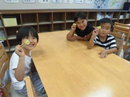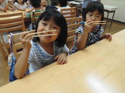 つぎにお箸を正しく持てているか,確認をしました。「正しく持てたよ!」とうれしそうな声が聞こえる反面,「難しいなぁ。」と困った声も聞こえてきました。みんなが正しく持てるようになるといいですね。