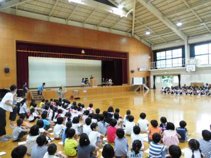 今回は「いじめ問題に立ち向かうためには」をテーマに6年生の代表が「どういうことがいじめなの?」「なぜ,いじめはおこるの?」と討論を展開しました。その他の児童は自分の考えと比べながら代表者の討論をしっかりと聞いていました。後半は「自分たちにどんなことができるのか?」全校児童が意見を発表したり,感想を交流し合ったりしました。