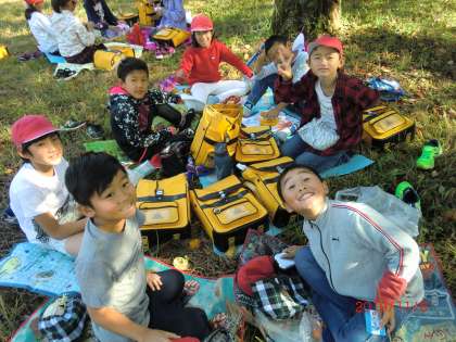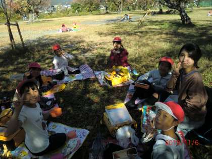 帰りには,みんなで青空の下でお弁当を食べました。とってもいいお天気で,お弁当の美味しさも倍増したようです。「ごちそうさまでした!」