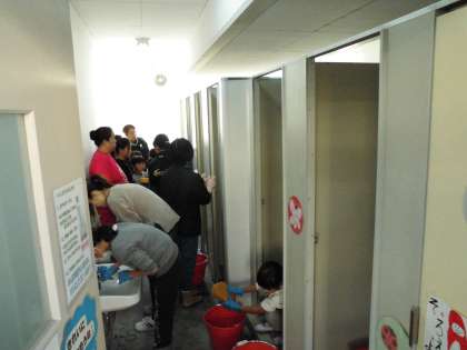 トイレの便器や床,換気扇,手洗い場などを隅々まで丁寧に磨いてピカピカにしました。