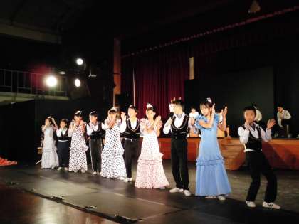 5年生の17名が,本公演に出演しました。出演児童は「わくわく・de・フィエスタ」で,民衆に愛されている愛嬌のある踊りルンバを,カホンリズムとともに楽しく踊りました。