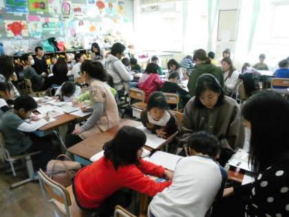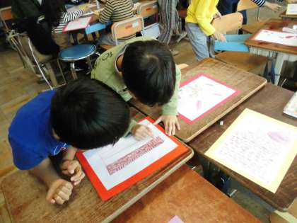教室では,さつまいも料理の下に敷くランチョンマットを作りました。おいも,食欲の秋にちなんだ「大好きなもの」の絵を楽しそうに描いていました。