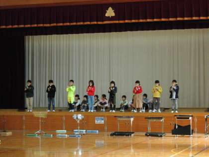 3年生は,音楽で学習したことを発表します。リコーダーや鍵盤ハーモニカ,太鼓や鈴など,いろいろな楽器で演奏するので,リズムが早くならないように気をつけて練習しました。
