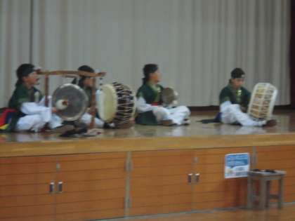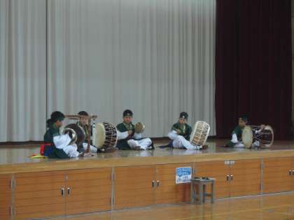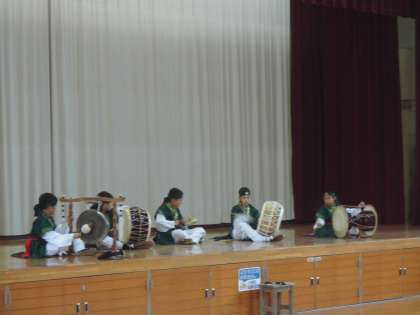 プログラム5番は朝鮮第二初級学校の5年生男子5名が朝鮮半島の伝統音楽サムルノリを披露してくれました。迫力の演奏に感動しました。