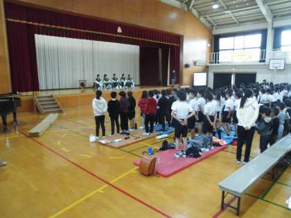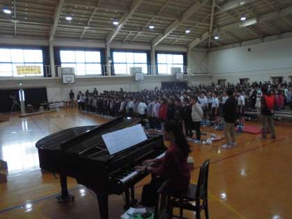 プログラム6番は「全校合唱」で『空を見上げて♪』でした。朝会などの全校集会で練習してきた合唱を,朝鮮第二初級学校のお友だちへの感謝の意を込めて発表しました。