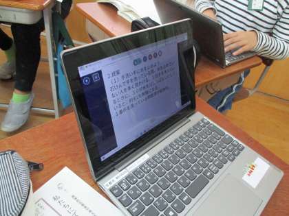 国語では「私たちにできること」として校内の現状や課題点を明確にして,それに対する提案文書をGIGA端末を駆使して作っています。