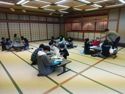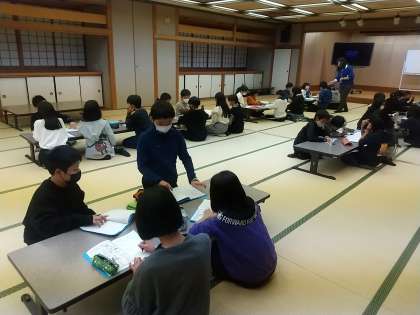 修学旅行一日目を各自で,グループで,学年全体で振り返りました。